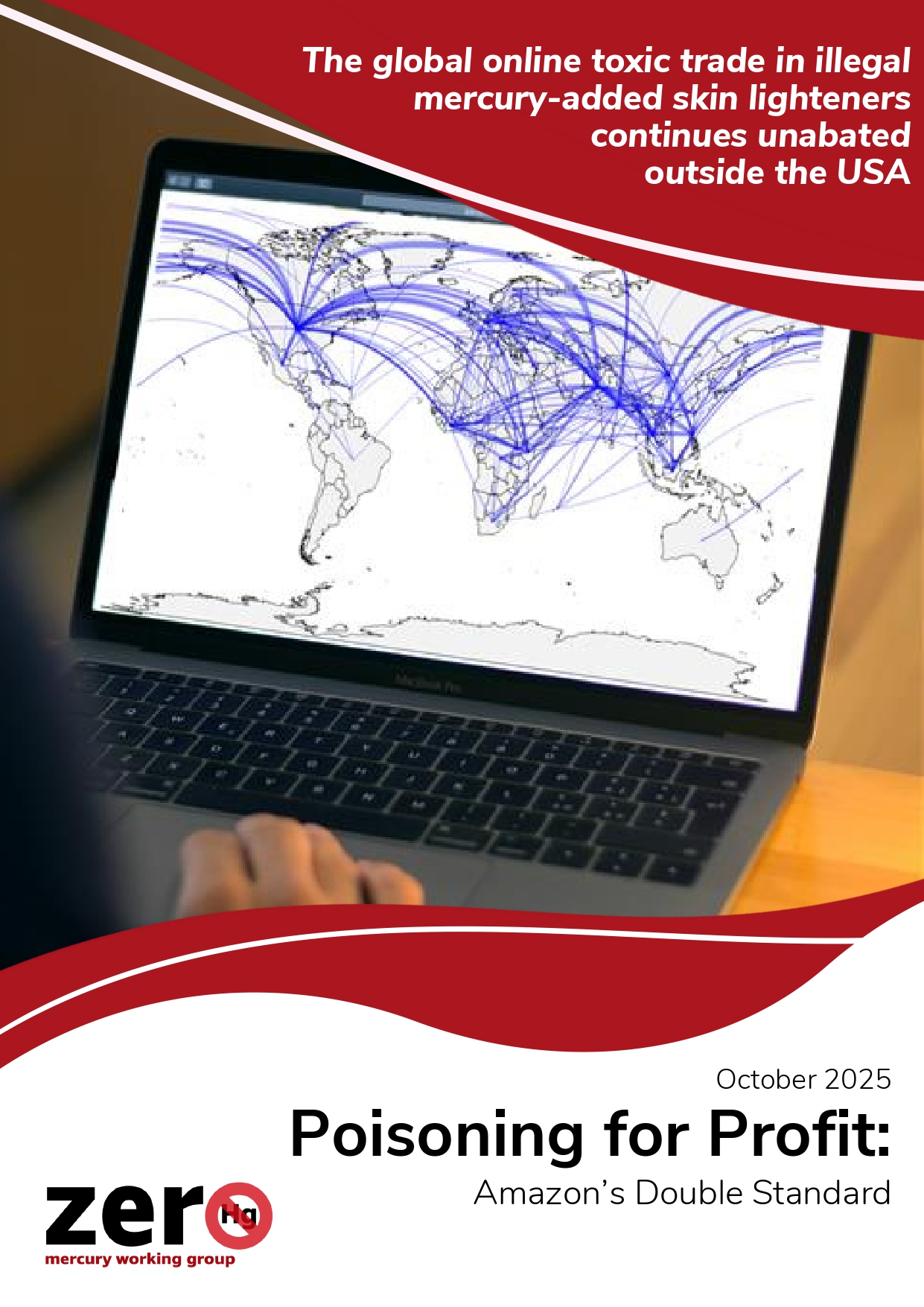 In a new report published in October 2025, the Zero Mercury Working Group (ZMWG) exposes Amazon’s double standard in addressing the global sale of mercury-added skin lightening products (SLPs). Despite a recent U.S. legal settlement requiring Amazon.com to halt such sales within the United States, similar safeguards have not been extended to its international platforms.